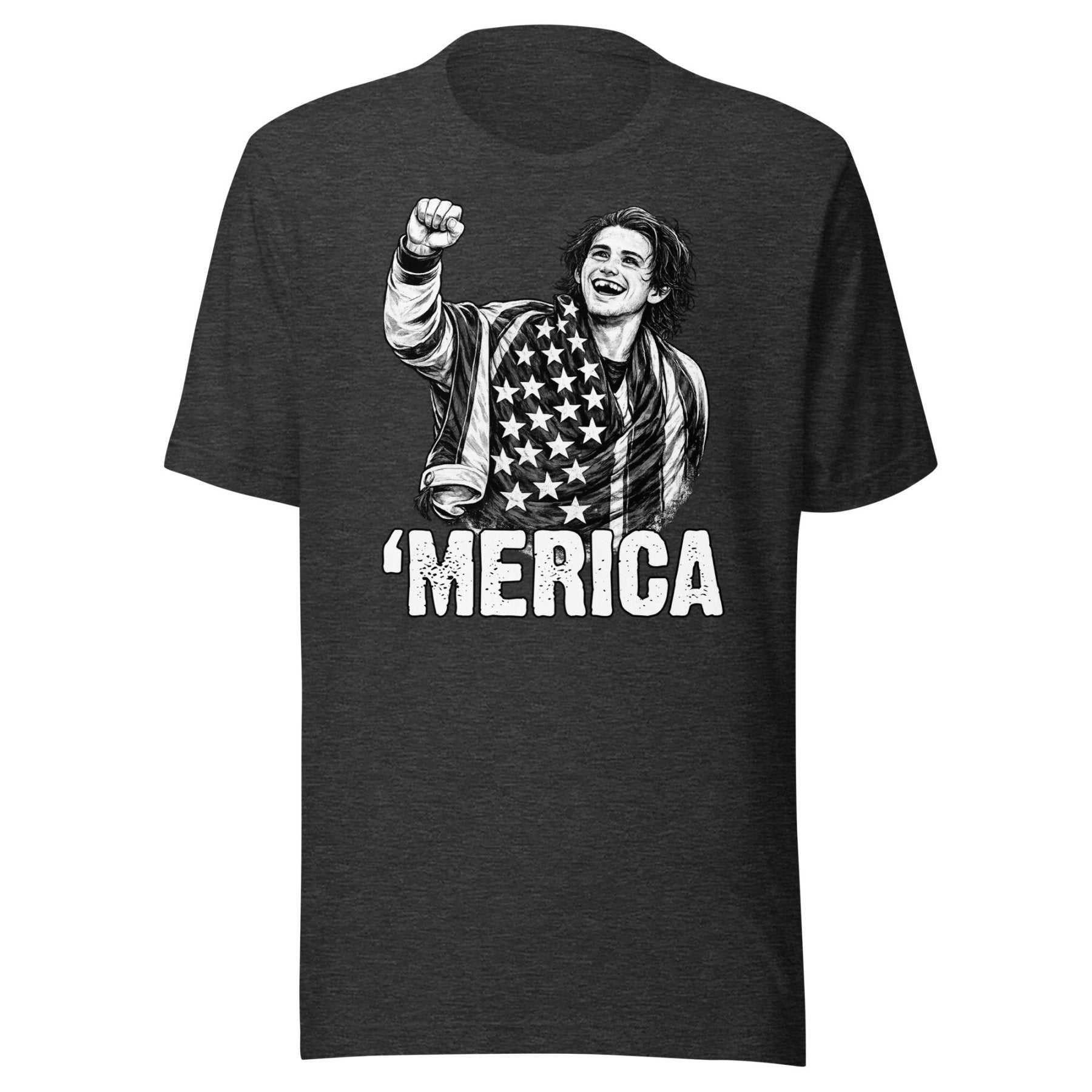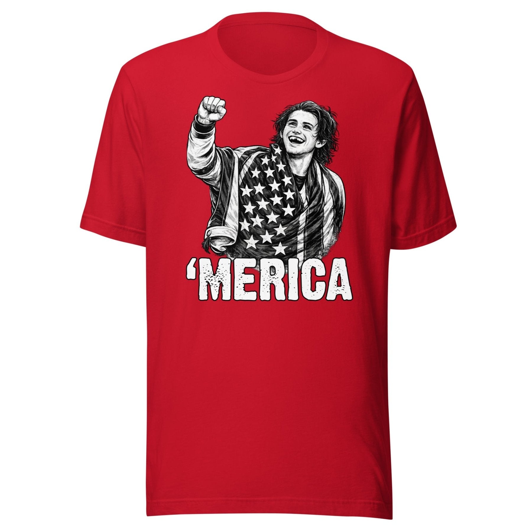 Celebrate American excellence with this bold 'Merica Jack Hughes Olympic Gold Medal USA Hockey Shirt. Featuring the triumphant spirit of Team USA's finest, this tee embodies the grit, determination, and patriotic pride that define our nation's hockey legacy. Perfect for fans who refuse to compromise on quality or country. Wear it loud, wear it proud—because freedom and victory go hand in hand.